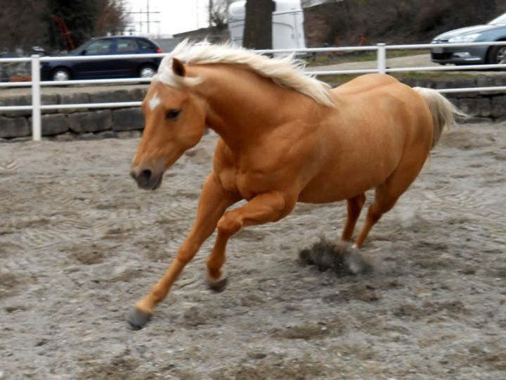 2012 sollte er wegen eines Hufdeffektes eingeschläfert werden. Wir kauften ihn zurück, weil wir glaubten, dass wir den Defekt beheben können. Mittlerweile ist er längst im Einsatz für die Patienten und kann sogar wieder als Turnierpferd eingesetzt werden.